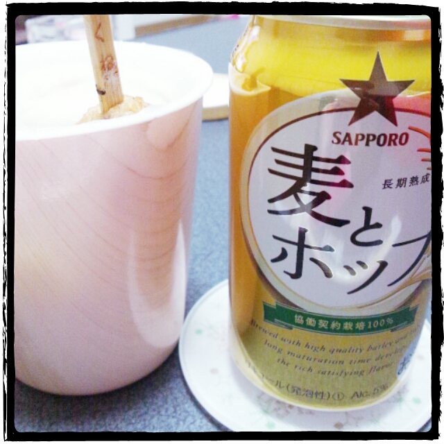 休憩の麦ホ。新しいの飲むのは初めて!更に飲みやすくなった感。