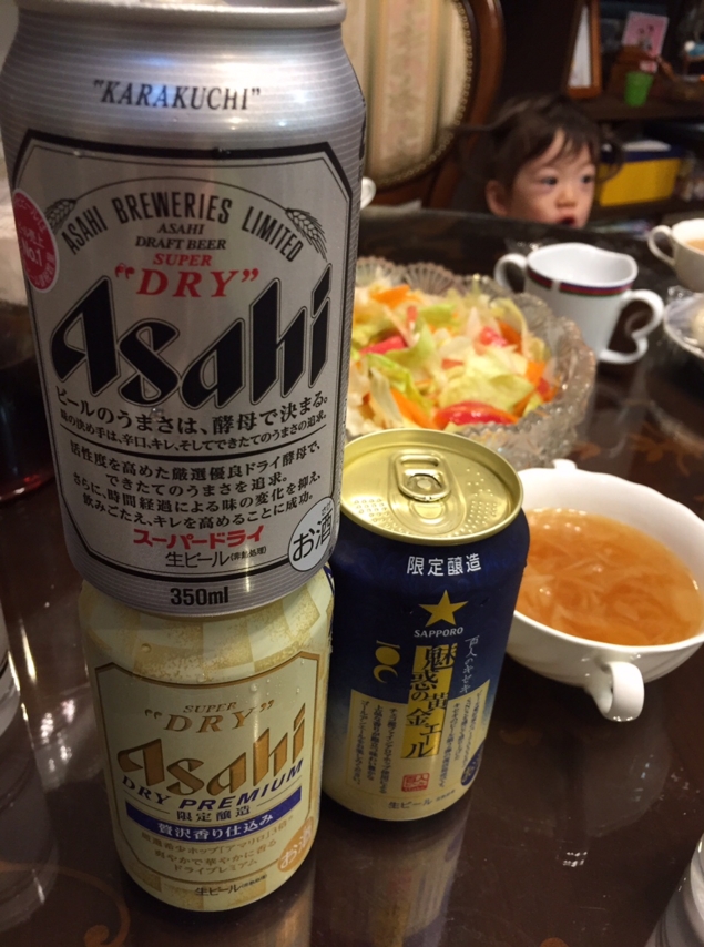 無事に葬儀も終わりまして、ドライプレミアムに魅惑の黄金エールに。