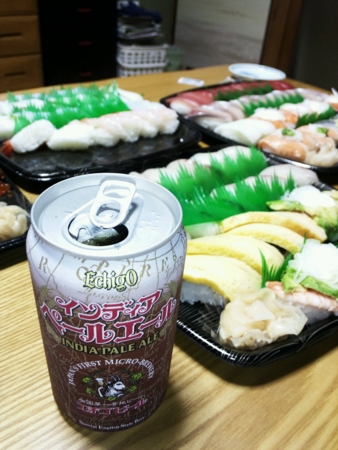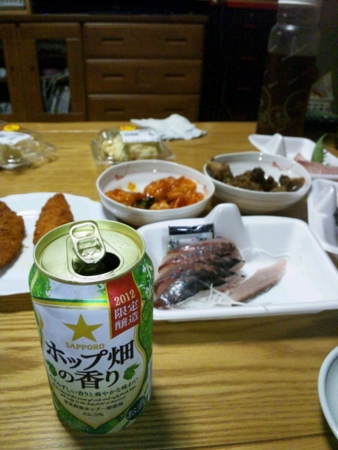 奥さんが遅くなるとのことでスーパーの惣菜でホップの香りをいただきます。