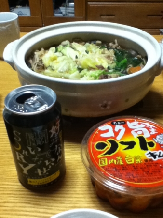 もつ鍋を作ってキムチを乗せてお好みの辛さにして食べます。