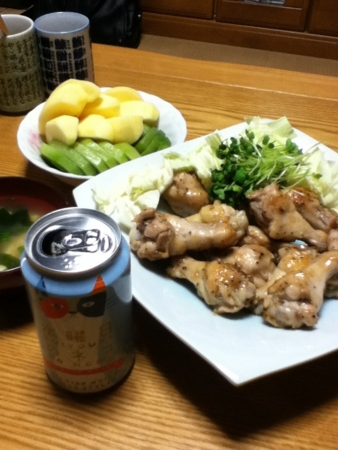 砂肝のガーリックスパイス炒め、野菜のハーブオイル焼きと味噌汁を作りました。