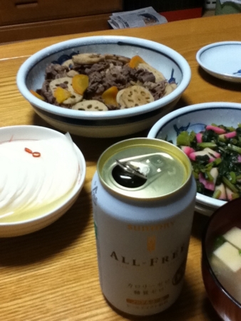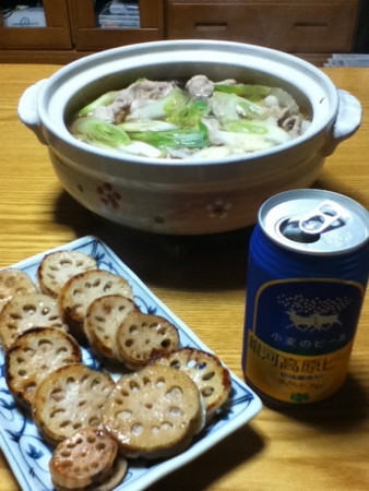 牛肉と蓮根の煮物、味噌汁、蕪の千枚漬けを作りました。
