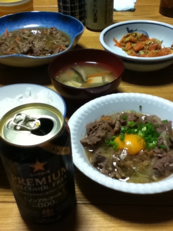 昨夜のすき焼きの残りに豚肉を入れて豚丼にしました。