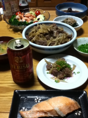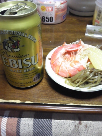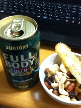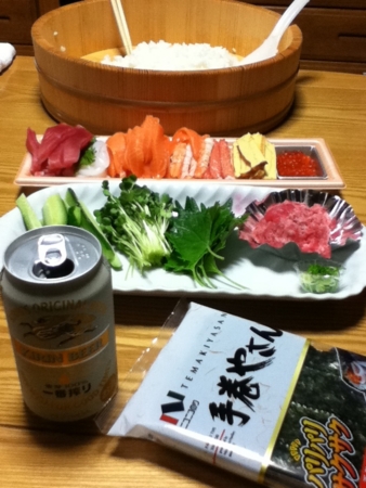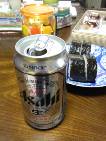 昼飯を食べそこなっていたので巻き寿司をつまんでスーパードライをいただきます。