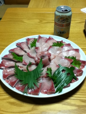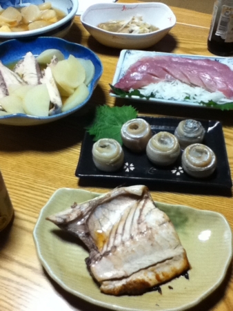 照焼きと刺身とヤズ大根。