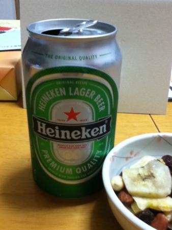 クリスマスカラーのハイネケンをいただきます。