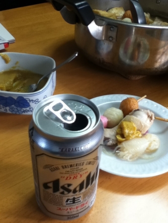 二日目のおでんを肴にスーパードライをいただきます。