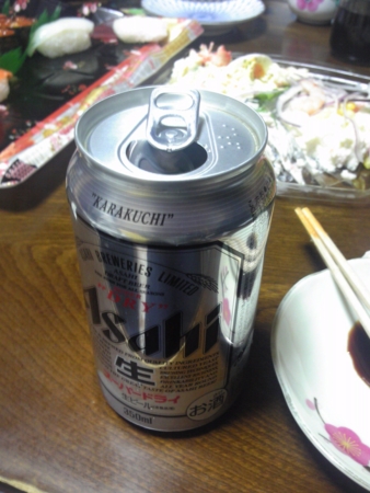 お寿司とオードブルをツマミながらスーパードライをいただきます。
