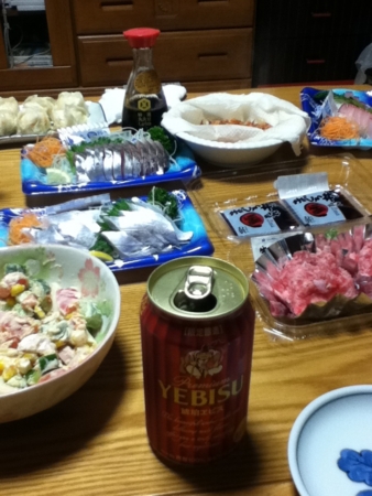 昨夜の折詰の残り物で薫り華やぐヱビスをいただきます。