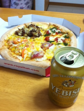 めったに頼まないピザをとってヱビスビールをいただきます。