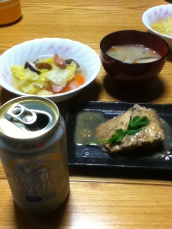 ごま鯖が一尾500円程と安かったので味噌煮にしました。あとは白菜の小鍋と味噌汁。