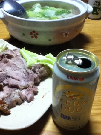 寒さがぶり返したので白菜の鍋も作って、休む日の0.00をいただきます。