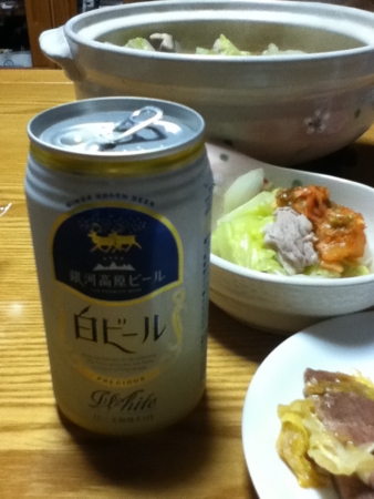 料理は嫁さんにまかせてチーズをツマミに軽井沢ビール プレミアムクリアをいただきます。