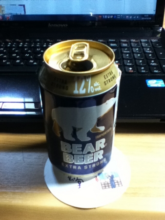 夜中なのに一口飲みたくなって冷蔵庫の奥から出してきた白熊。