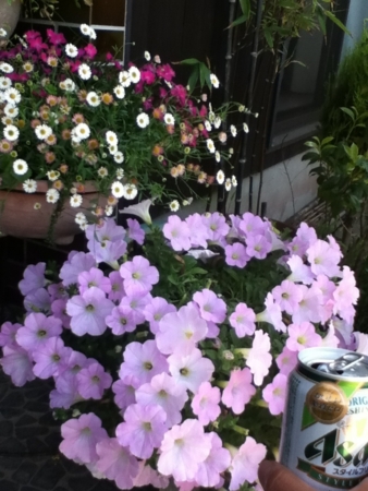 大株になったペチュニアと源平小菊を愛でながらスタイルフリーをいただきます。