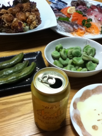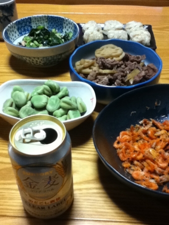 買ってきたお惣菜でスーパードライ プレミアムをいただきます。