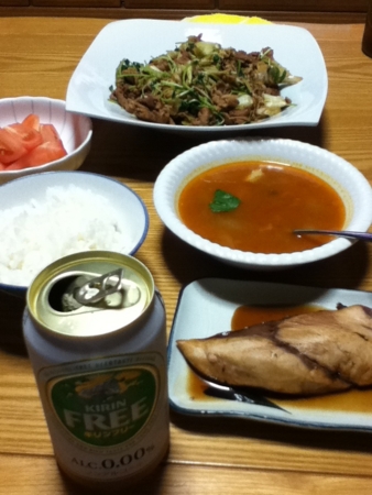 昨夜おかずを作りすぎたので今夜はコールスローと味噌汁だけ作りました。