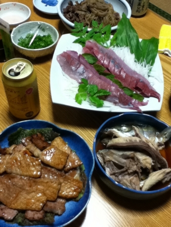 ハマチ(ヤズサイズ45センチ)が480円と安かったので捌いてお造りとあら煮にしました。