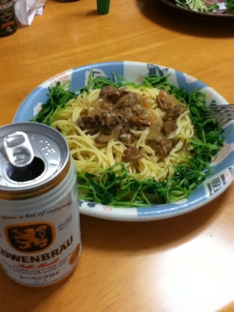 珍しく嫁さんが早く帰ってきたので狭いキッチンで争いながら料理しました。