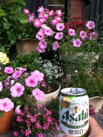 ビオラからペチュニアへの切り替えがうまくいって華やかな玄関先です。