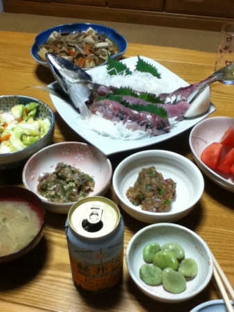 大きい鯵が安かったので姿造りとなめろうにしました。