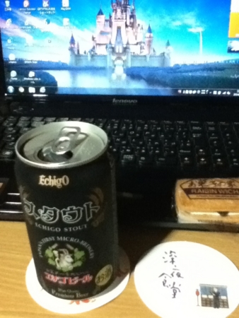 深夜食堂のコースターでエチゴビール スタウトをいただきます。