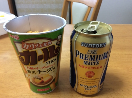 昼食代わりのスナック&ビール。