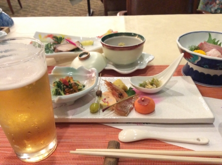 温泉の大浴場からあがっての、ビール。