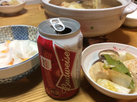 今夜も夕食の支度を任せて晩酌です。