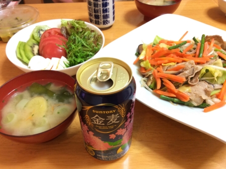 サントリーからのプレゼントの金麦桜缶をいただきます。