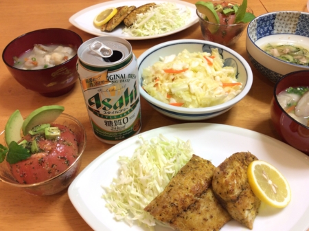 帰宅が遅かったので出来合いの惣菜で夕食です。
