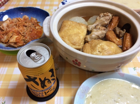 鶏牛蒡鍋を肴にサッポロ 冬物語をいただきます。