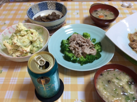 嫁さんがポテトサラダと茹で豚と味噌汁を作ってくれました。