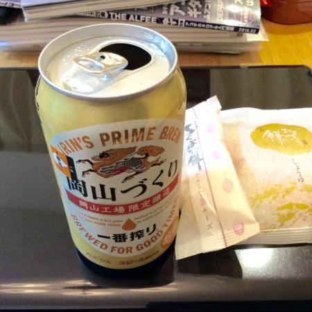 煎餅をツマミに一番搾り 岡山づくりをいただきます。