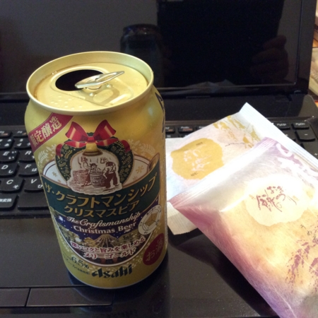 煎餅をツマミに売れ残りのクリスマスビアをいただきます。