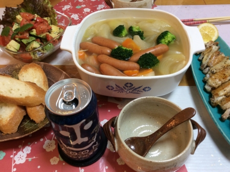 嫁さんが蕪のポトフと焼きかぼちゃ、
