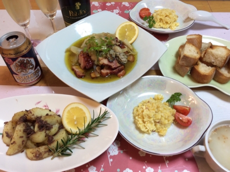 牡蠣とベーコンのアヒージョ、アンチョビポテト、