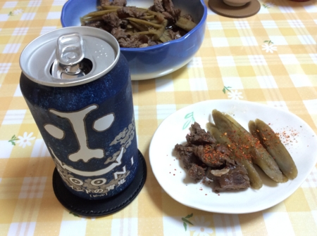 牛すじとごぼうの煮付けと味噌汁を作りました。