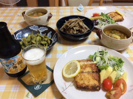 嫁さんお出かけで一人の夕食。