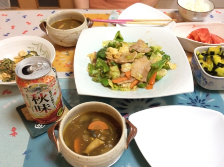 夏野菜のスープカレーと豚バラ野菜炒めを作りました。