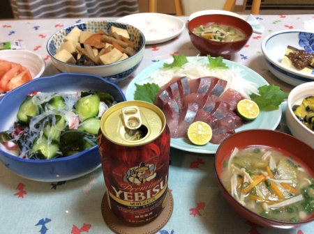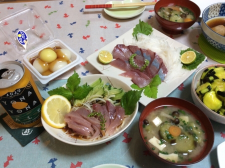 ハマチのお造りとタコとキュウリの酢の物、