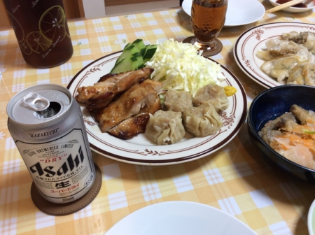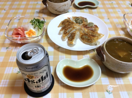 ギョウザとスープカレーとサラダを作ってもらいました。