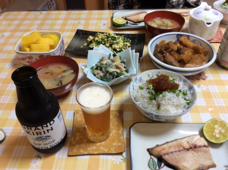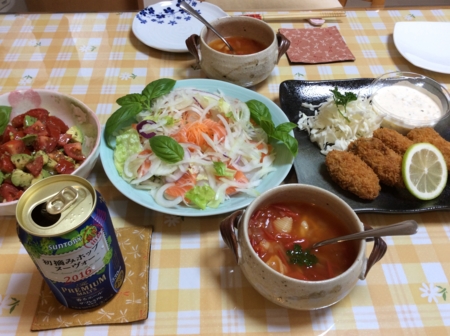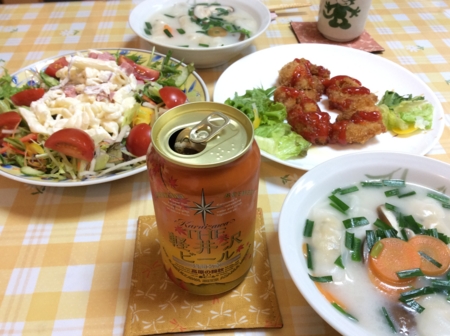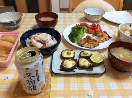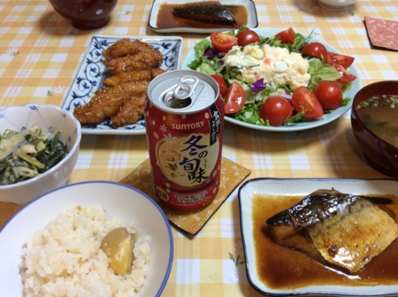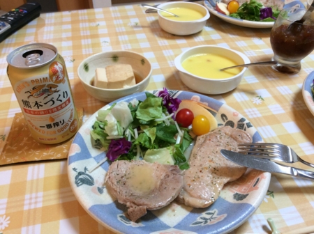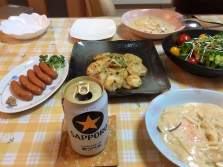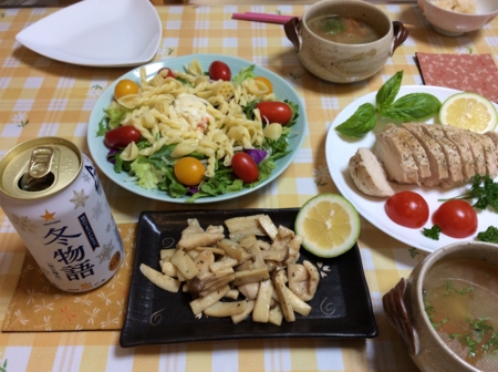 ポテトサラダとカボチャのスープを肴に
