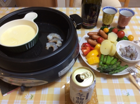 チーズフォンデュでサッポロ冬物語をいただきます。