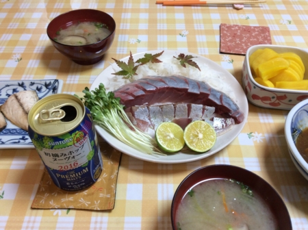 ハマチをお造りとなめろうとさんが焼きにしました。