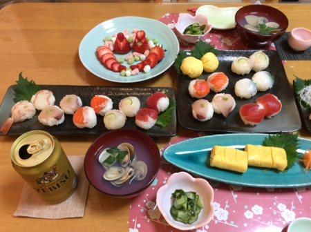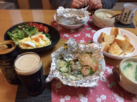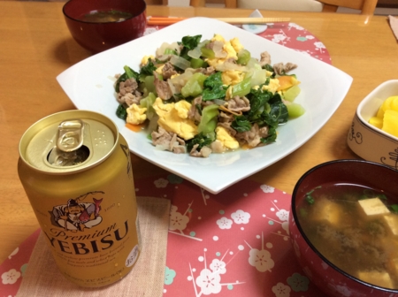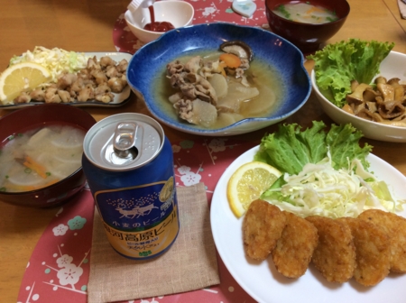 嫁さんの帰りが遅いとおかずの品数が増えます。