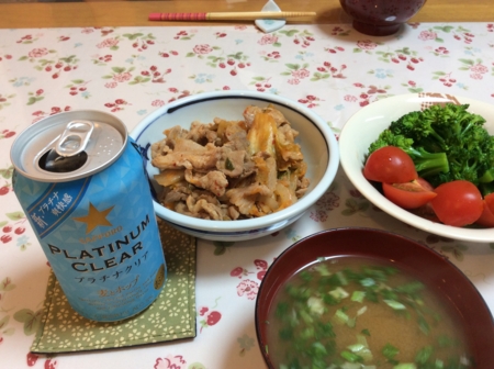 ブロッコリのサラダとサツマイモの味噌汁を肴に