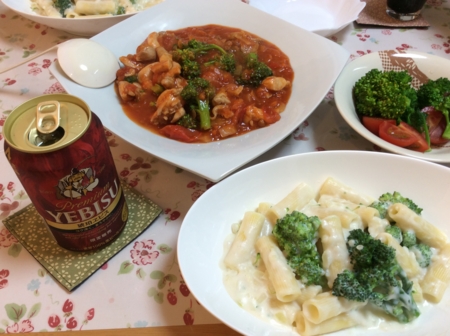 ブロッコリと鶏肉のトマト煮、ブロッコリのサラダを作りました。