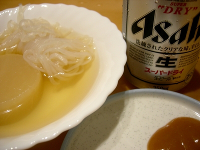 ローソンが近くにあってよかった。だいこん&しらたき。スーパードライ。