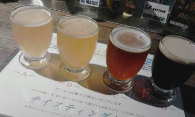 宇都宮のBlue Magicというクラフトビールのお店で、テイスティングセット。ゆずを使ったビールとダーク系ビール♪